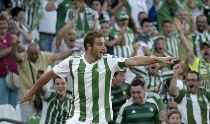 Antes de que se cumpliera el primer cuarto de hora llegó el premio al mejor juego del Betis, un remate del delantero Sergio León no fue bien bloqueado por el meta rumano Costel Pantilimón, quien debutaba en la liga en este encuentro, y Joaquín Sánchez, de cabeza, sólo tuvo que empujar el balón al fondo de la meta.