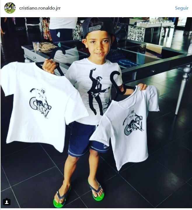 "Según informó la revista española Lecturas, las camisetas que usa el pequeño Ronaldo van desde los $210 (¢122.220) a los $240 (¢139.680), pasando por marcas como Philipp Plein, Armani o Dolce & Gabanna", escribieron en Infobae.com.