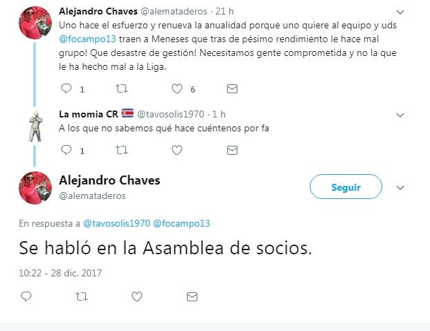 @focampo13 @fedecal10 @SebasTrigueros Señores buenas,tengo dos años que deje ser socio,y tenia planeado en enero la renovacion pero con lo de meneses me siento ofendido,fui socio 18 años,ahora nunca mas!!