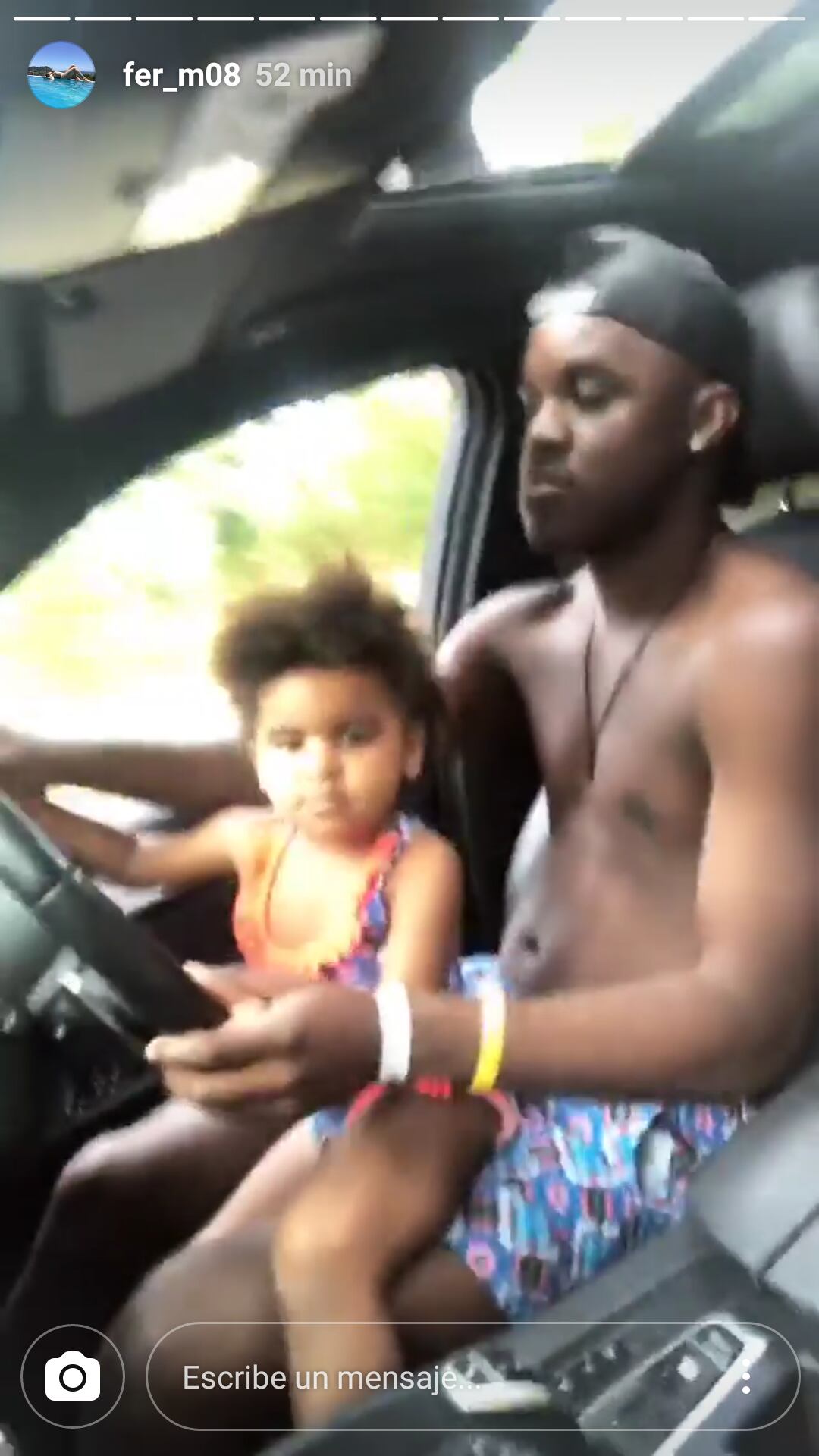 La esposa del jugador compartió en su cuenta de Instagram varios videos del desfile de moda y de cómo la familia ha disfrutado de estos días de sol y playa e incluyó un paseo en carro en el que Campbell aparece manejando con su hija sentada en su regazo.