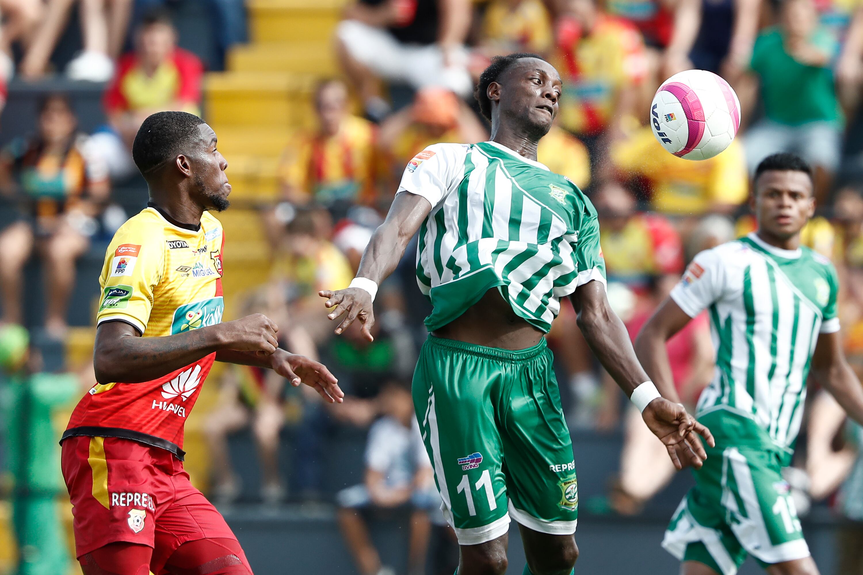 En el centro del campo Rándall Azofeifa le cometió una falta al venezolano Víctor Pérez.