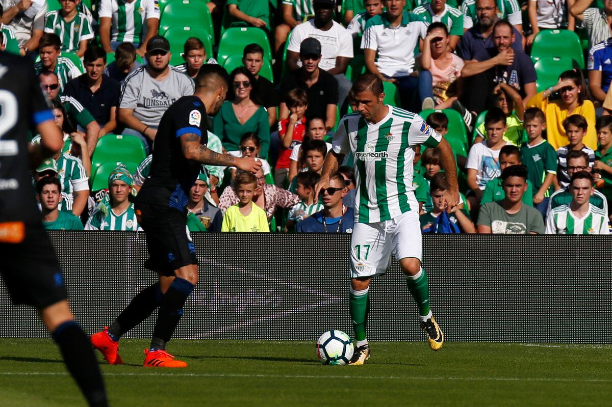 El Betis llevó toda la iniciativa ante el planteamiento conservador de los albiazules, fue el que más empujó para aprovechar la calidad de Joaquín y de Campbell, ambos a pierna cambiada por las bandas y pronto encontró el premio a su ambición tras avisar en un pase de Camarasa que Pacheco paró ante Tonny Sanabria.