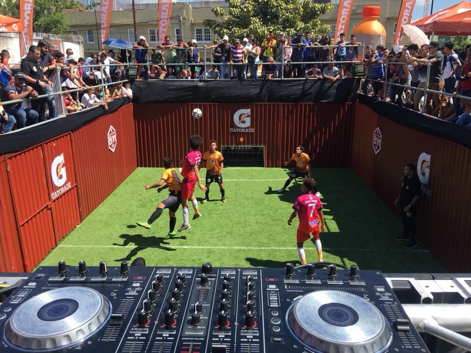 Núñez se presentó la tarde del domingo en el barrio conocido como “La Cali”, donde un grupo de jóvenes se enfrentaba en eliminatorias, con equipos de 4 jugadores, para representar a Costa Rica en Panamá en el primer barco-estadio.