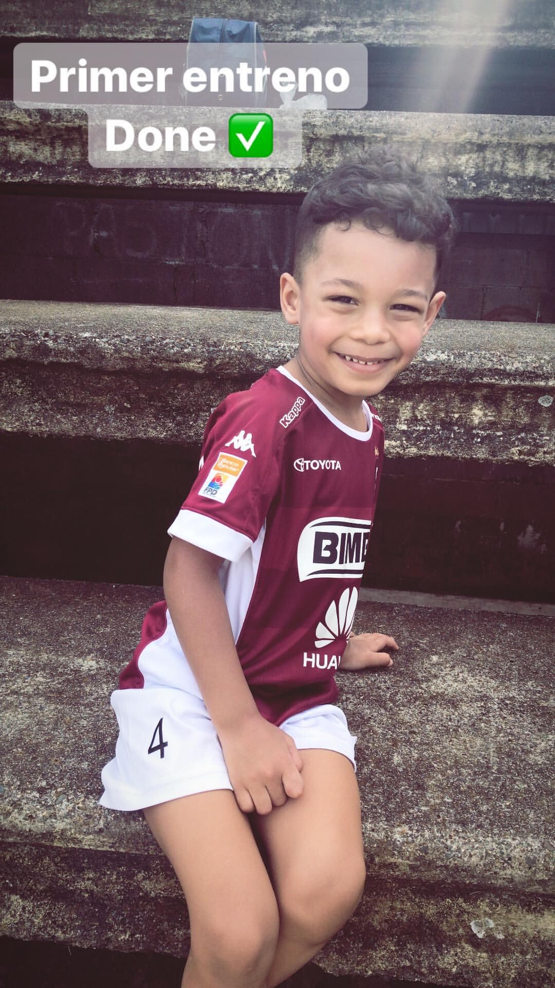 La emoción para el defensor de la tricolor no se quedó solamente en ver a su hijo correr detrás del balón de fútbol, sino que lo hizo vistiendo los colores del Saprissa.