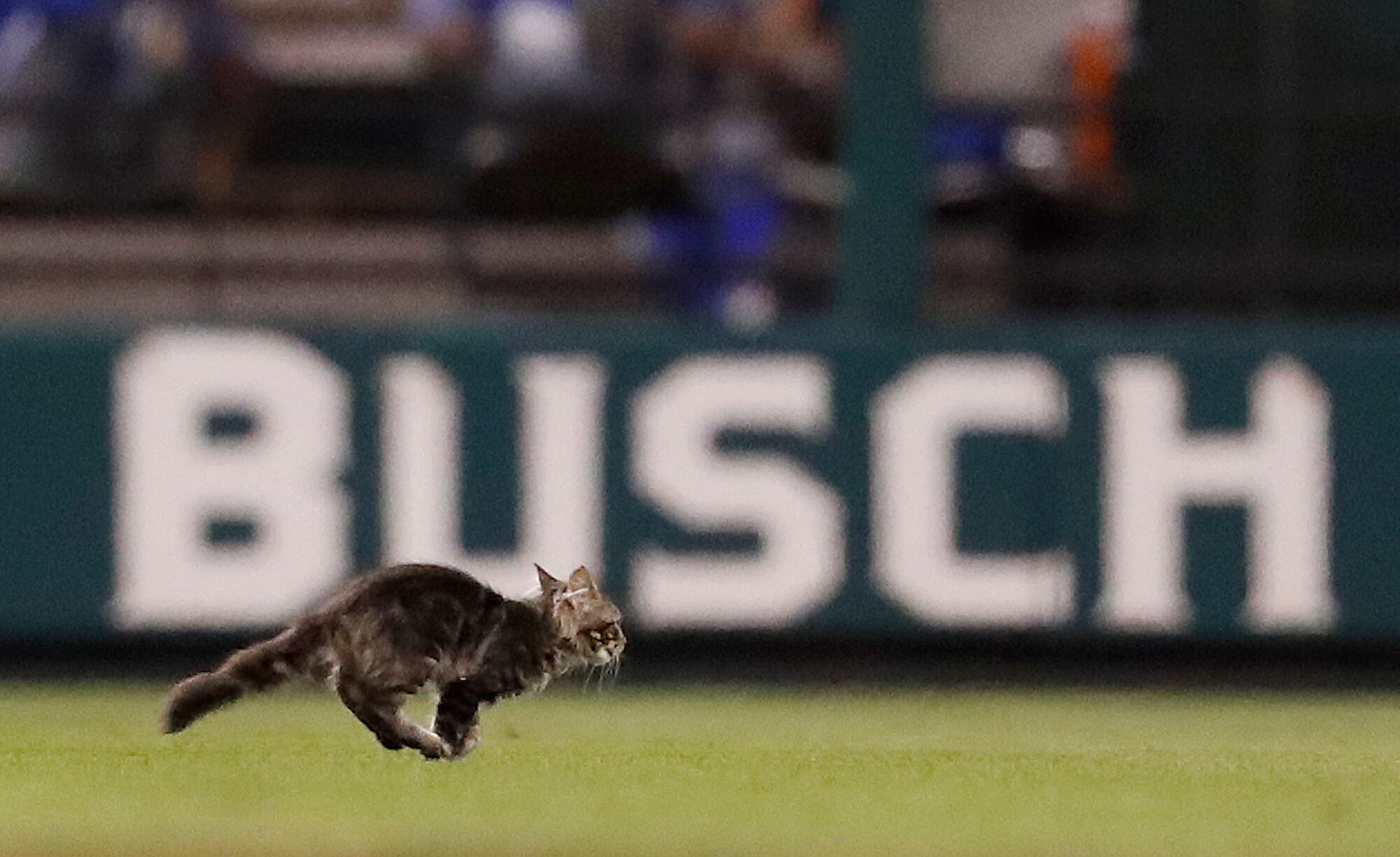 Una fanática, que afirmaba que el gato era de ella, perdió al felino el miércoles en el área de City Garden en el centro de San Luis. Esto sucedió después de que ella agarrara el peludito y se lo llevara de manera repentina del Busch Stadium, donde el animal fue sacado del terreno de juego durante la victoria de los Cardenales sobre los Reales.