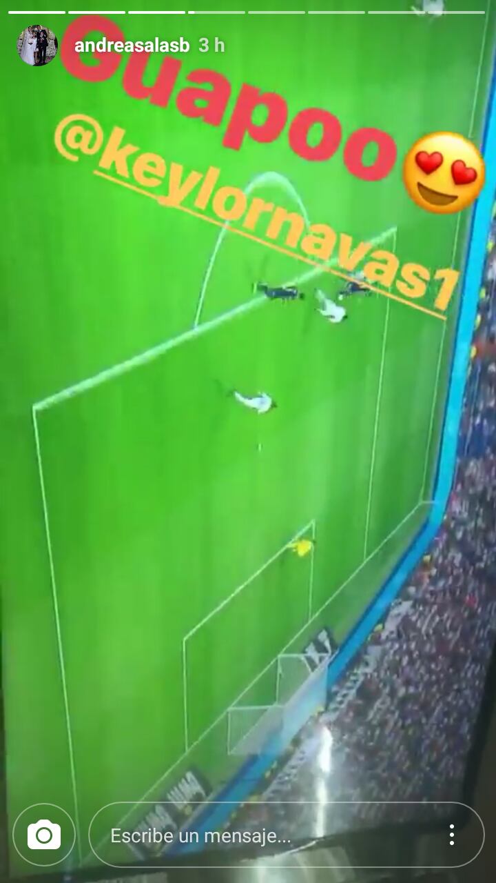 Salas también compartió en sus redes sociales varias imágenes y videos, pero eso no fue todo hasta le lanzó uno que otro piropo a su amado: “guapo”, le escribió al portero costarricense.