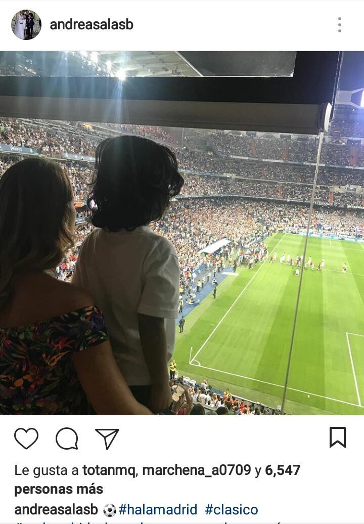 La hermosa mujer se tiró el segundo partido de la Supercopa desde el punto más alto del estadio en compañía de Mateo, el hijo de la pareja.