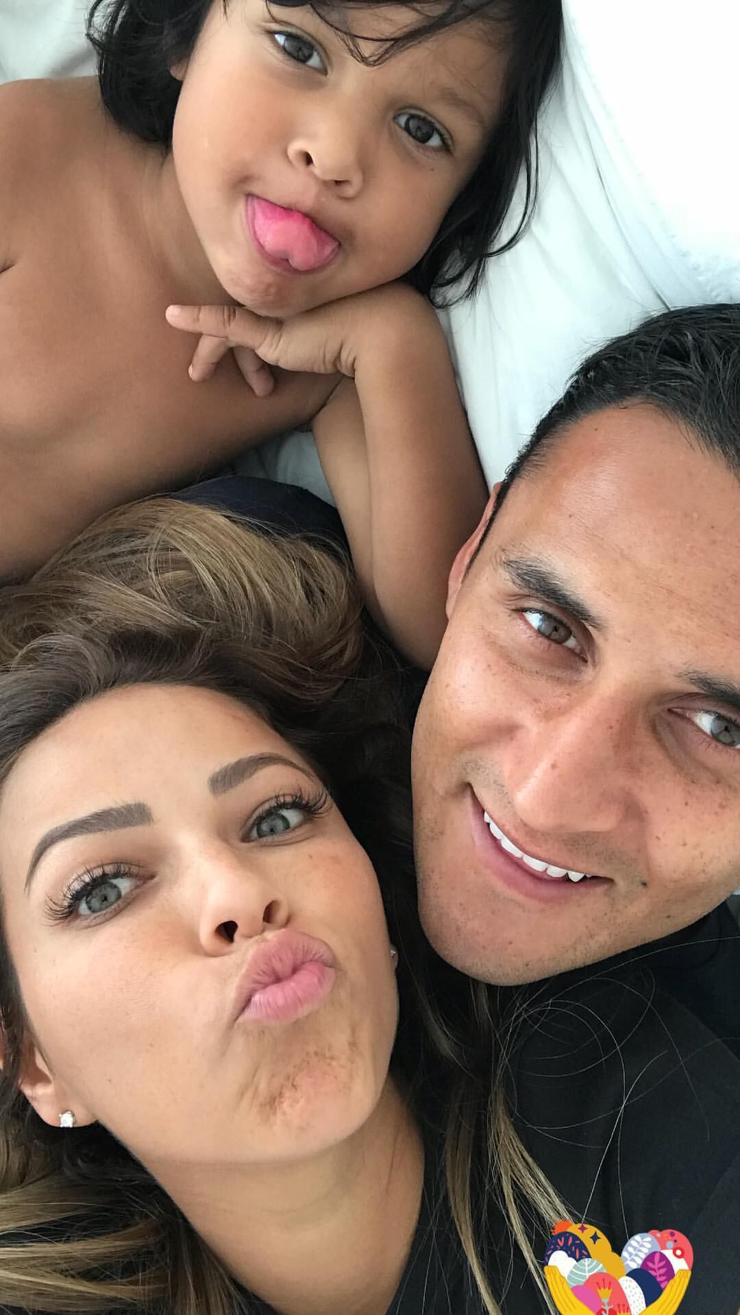 Andrea Salas, esposa del arquero del Real Madrid Keylor Navas, subió una foto bastante peculiar en su Instagram donde se les ve bastante relajados junto a su hijo.