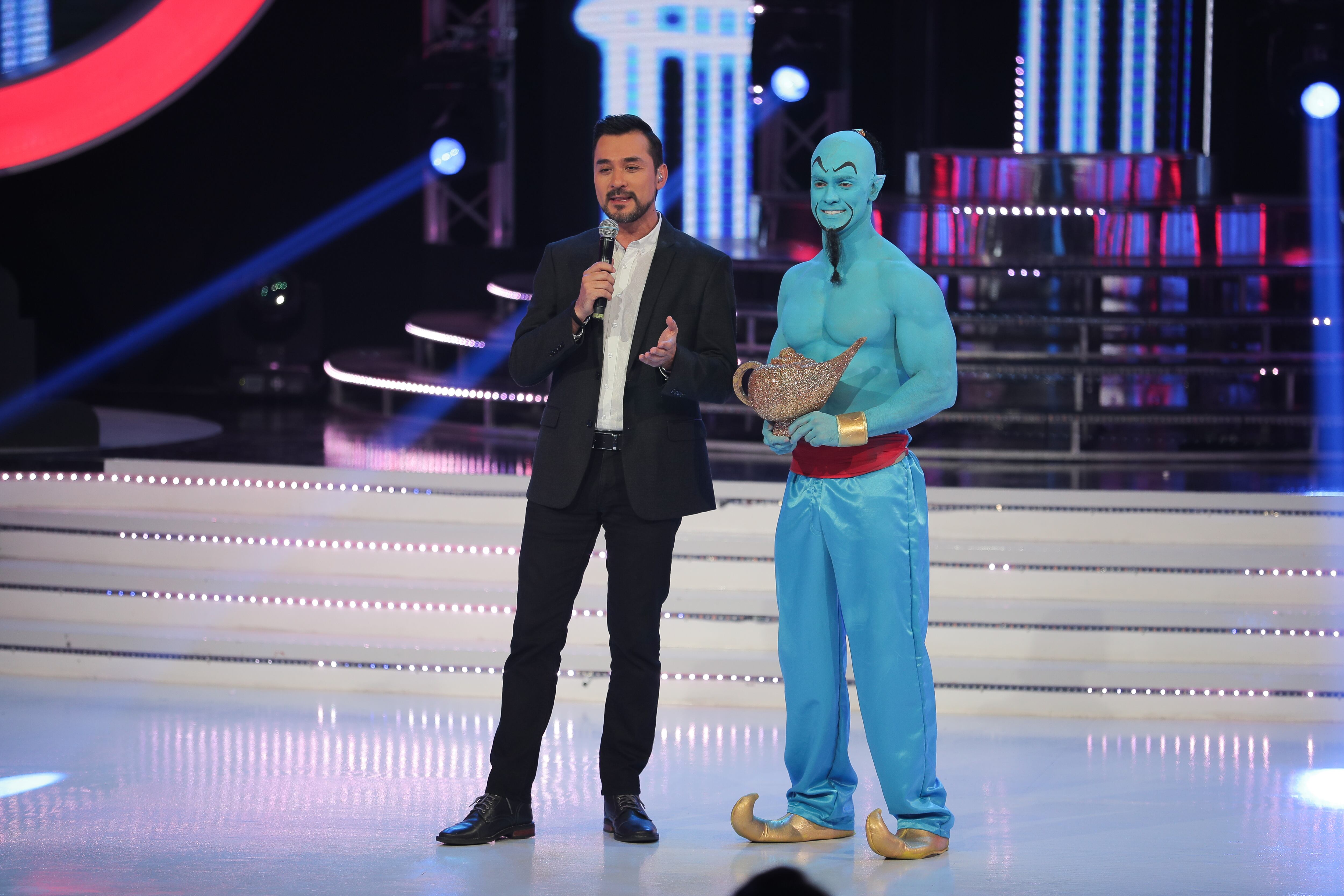 En Tu cara me suena ya algunos de ellos se asomaron y dieron una probadita de lo que podían hacer. Como la noche en que Daniel Carvajal se apercolló toda a Vanessa González, cuando a la cantante le tocó interpretar a Pink. El musculoso también apareció como el genio de Aladino en el especial de Disney.