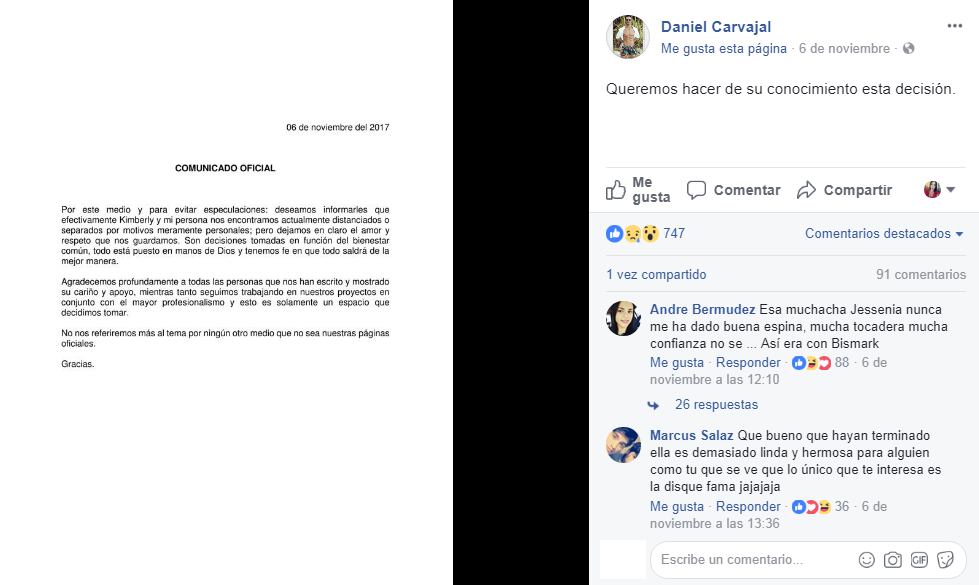 Un ejemplo es el modelo nacional Daniel Carvajal, quien utilizó esa vía para explicar que se separó de Kimberly Loaiza.