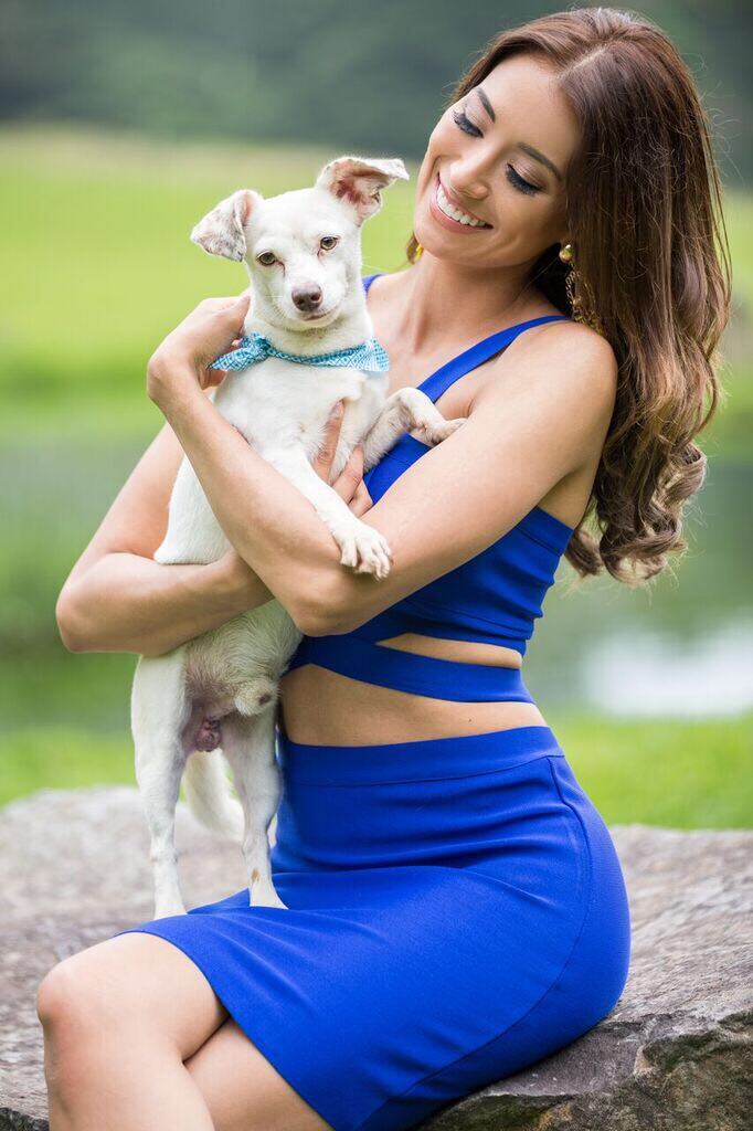 La Miss Costa Rica quedó flechada de un peludito que es mezcla de chihuahua y zaguate. El can se llama Lucas y tiene año y dos meses.