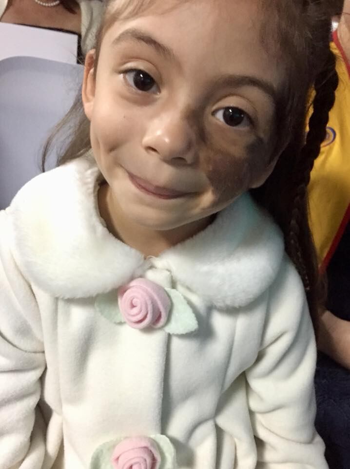 La pequeña nació con un nevus piloso congénito, que es un lunar gigante y con pelito que le cubre la mitad de la mejilla izquierda.