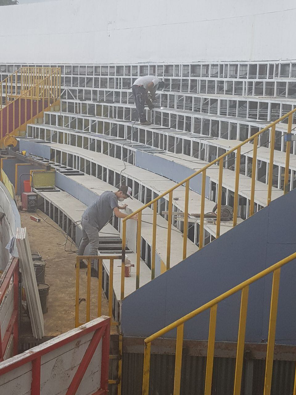 Tan solo están pegándole la última manita de gato, un pintadita por aquí y por allá, reemplazando algunas tablillas que estaban en mal estado por fibrocemento y terminando un palco que es totalmente nuevo.
