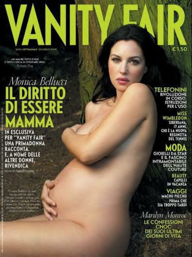 Dos veces ha posado la actriz Monica Belluci desplegando su sensualidad esperando un bebé. En 2004 protagonizó la portada de la edición italiana de 'Vanity Fair'.