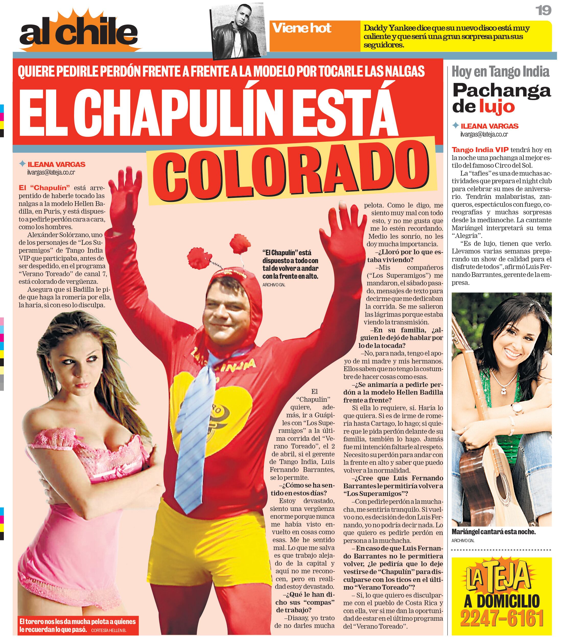 No es la primera vez que a Solórzano se le va la mano en la arena. En marzo del 2011 le tocó una nalga a la entonces modelo Hellen Badilla cuando ella estaba metida en el redondel.