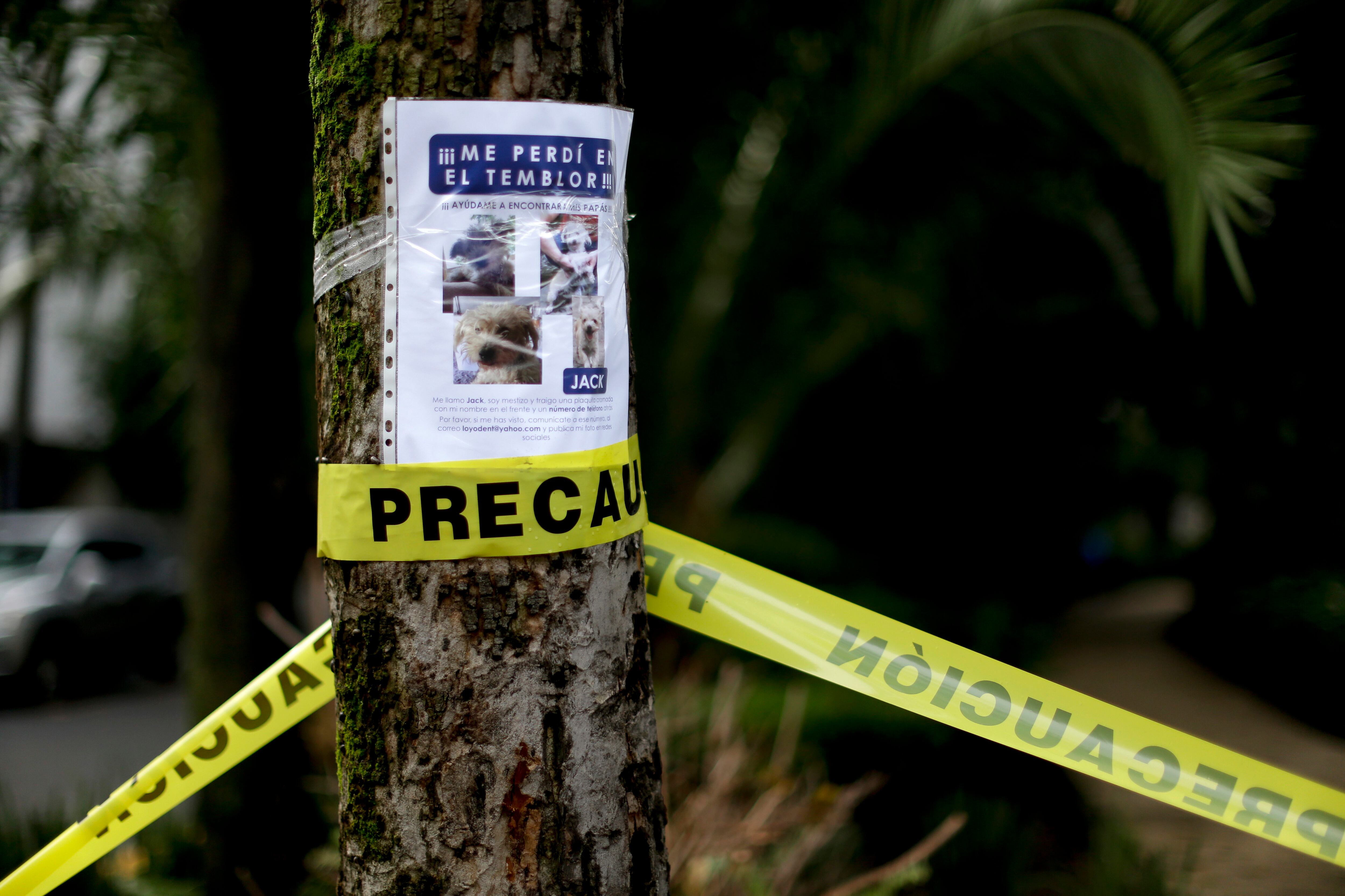 Alrededor de la capital mexicana se ven letreros de mascotas perdidas, en su mayoría perros. Sus propietarios creen que varias se asustaron y escaparon después del sismo que sacudió el centro de México y derribó muchos edificios.