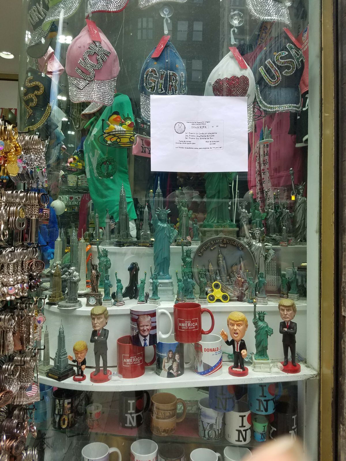 Ella caminaba con sus amigas por todo lado, conociendo la Gran Manzana cuando de repente, en la ventana de una tienda, se topó con un papel que las dejó sin aire de la risa.
