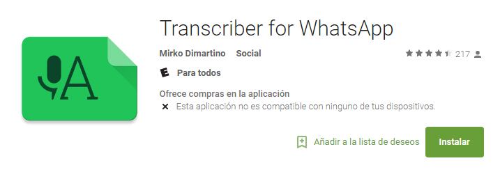 Transcriber for WhatsApp es el nombre y está disponible solo para usuarios Android.