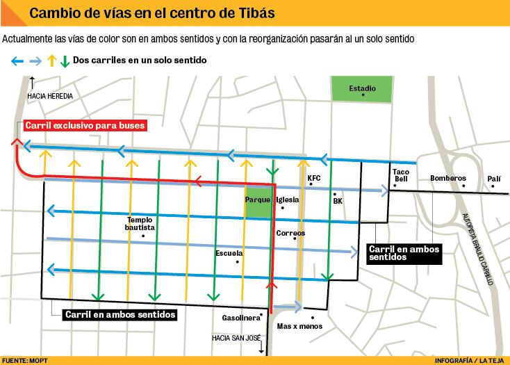 Esto lo que quiere decir es que van a hacer cambios significativos en las calles por donde transitan las naves que entran y salen del centro de Tibás, ya que varias calles dejarán de tener doble vía para tener solo una (ver infografía).