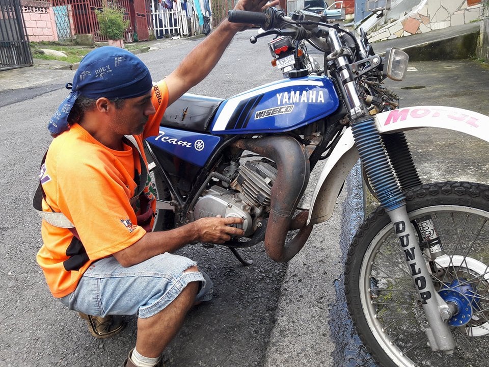 Julián Fonseca tiene una moto Yamaha DT 125 dos tiempos y está pariendo porque no le pasa Riteve, le dicen que contamina más de lo permitido y eso lo tiene lejos de la calcomanía que le urge para poner a rodar de nuevo su bichita.