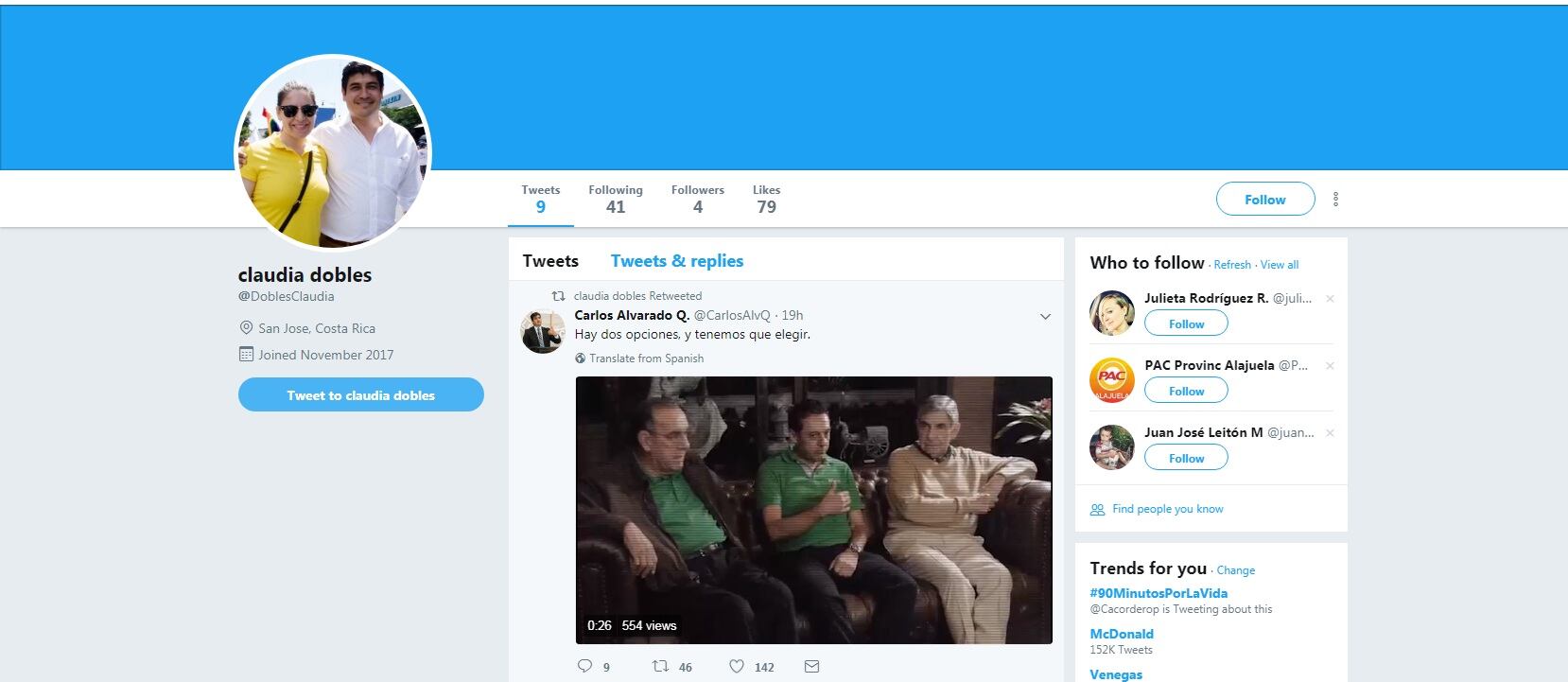Una de las víctimas de esta práctica es Claudia Dobles, la esposa del candidato del PAC, Carlos Alvarado.