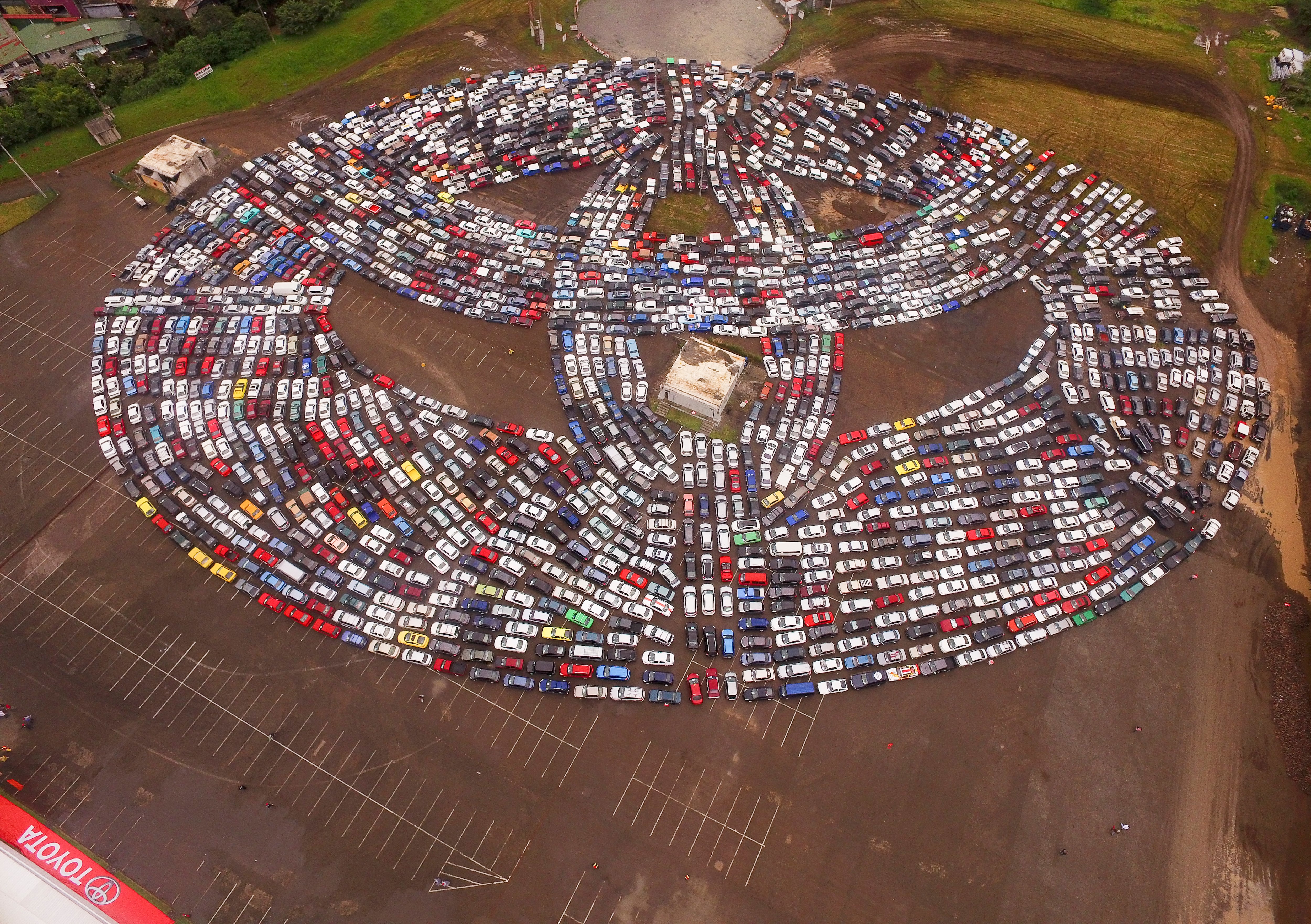 El primero de octubre quedará en la historia tica como un día en que se registró un Récord Mundial. Los rusos, el 7 de junio del 2014, se habían adueñado por primera vez de ese Guinness con 1.416 carros Toyota formando el logo de la empresa.