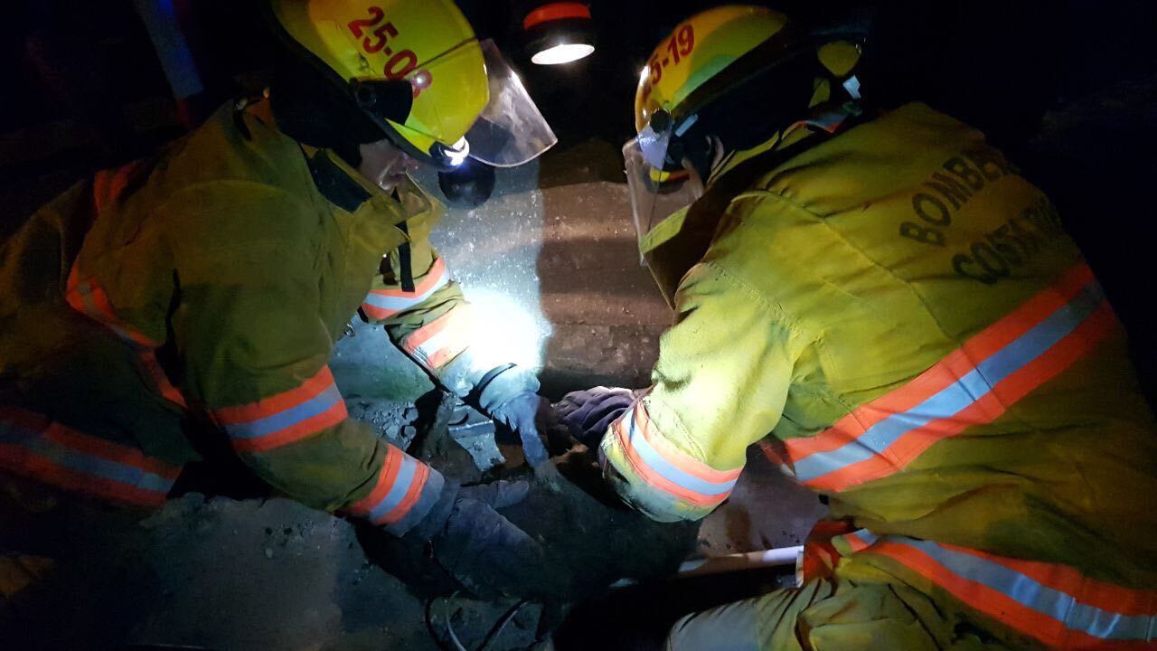 “Cuando llegó la primera unidad de Bomberos vieron que la situación estaba complicada porque el animal estaba como a unos tres metros debajo de la losa de concreto y tuvieron que pedir una unidad extintora para que les ayudara”, explicó Araya.