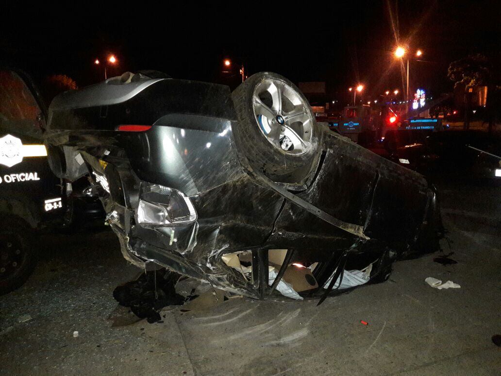 Iban desde la fuente de la Hispanidad, en San Pedro de Montes de Oca, hacia Zapote, pero al llegar a la rotonda de las Garantías Sociales, en Zapote, perdieron el control del BMW al no agarrar la curva de la rotonda.