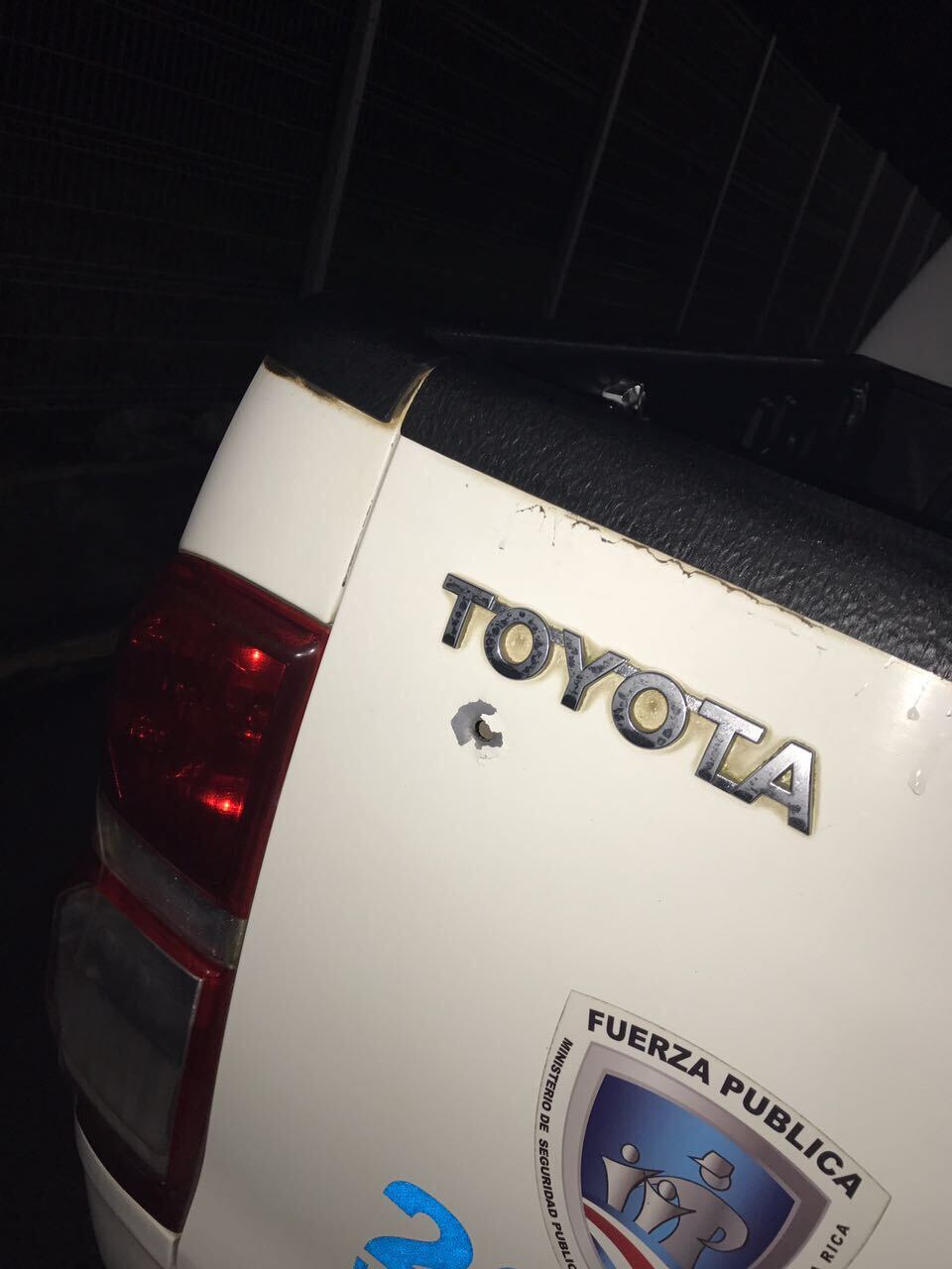 Los delincuentes dispararon con la ametralladora para tratar de acabar con los heridos, sin embargo, debieron jalar soplados pues llegó una patrulla de la policía que hacía una ronda. En total el OIJ encontró 30 casquillos, las paredes de la clínica y la patrulla quedaron aguejereadas.