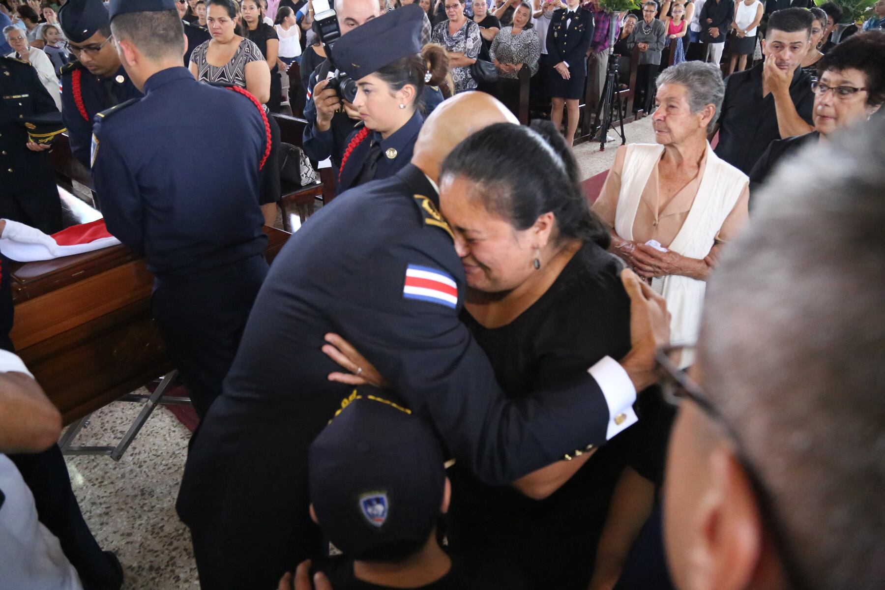 Los compañeros, jefes policiales, familiares y hasta vecinos que no lo conocían llegaron a la capilla de San Josecito de San Isidro de Heredia donde la gente tuvo que escuchar la misa hasta en la acera pues todos querían despedir a este valiente.