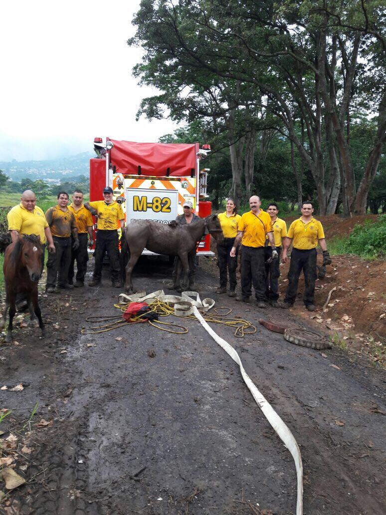 El alajueliteño les dijo a los bomberos que la yegüita tenía bastante rato de estar intentando salir, que la veía cansada. Había caído ahí luego de que llegara a la orilla del repasto y debido a que la tierra estaba suelta cayó al agua.
