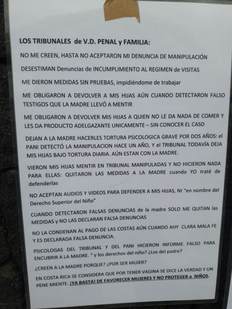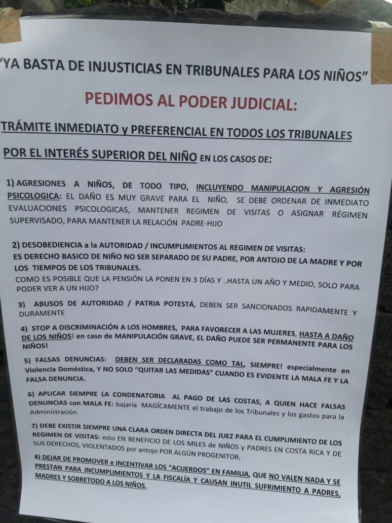 “He notado que el Gobierno se llena la boca de que Costa Rica firma tratados de derechos internacionales para proteger a los niños, pero la realidad es que están hechos solamente para favorecer a la mujer. Leyes sí hay, pero no las aplican o no las quieren aplicar”, se quejó.