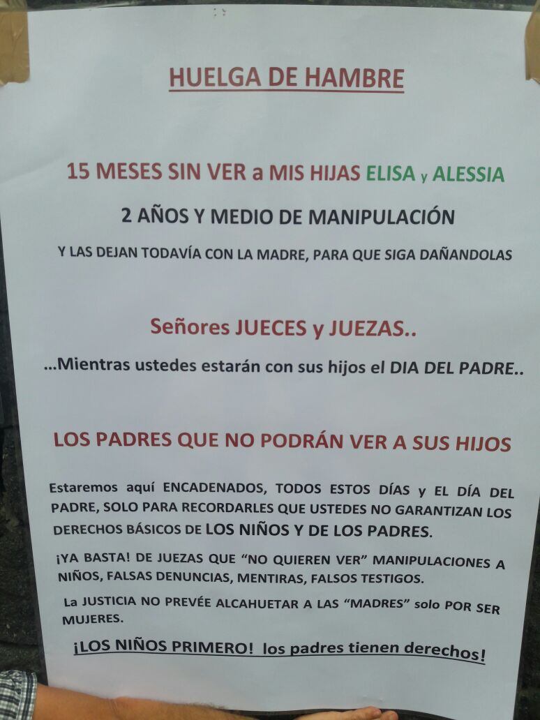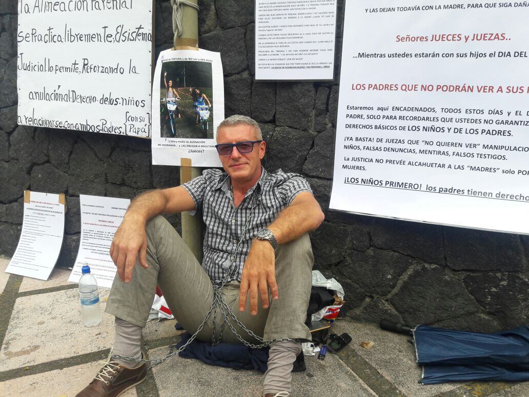 El italiano Paolo Padrone se encadenó la mañana de este miércoles frente a los Tribunales de San José y se mantiene en huelga de hambre poqrue tiene dos años y medio de no poder ver a sus dos hijas.