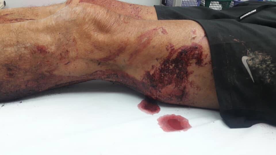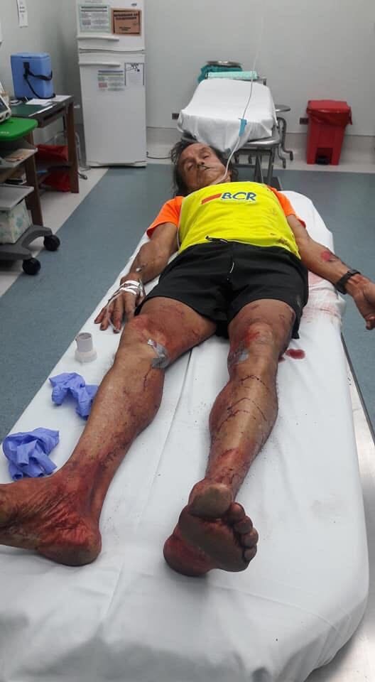 Los paramédicos al ver la condición del atleta lo llevaron de urgencia al hospital San Vicente de Paúl, de Heredia, donde de inmediato le pusieron la inyección contra el tétano por las infecciones, le colocaron suero porque estaba deshidratado y le lavaron las heridas.