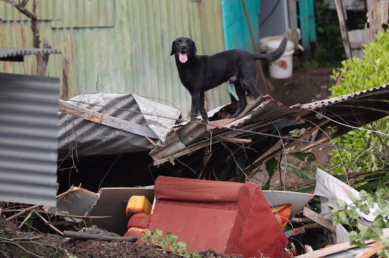 La Cruz Roja comenzó un segundo rastreo con perros adiestrados a las 10:15 a.m. para descartar la perdida de vidas humanas.