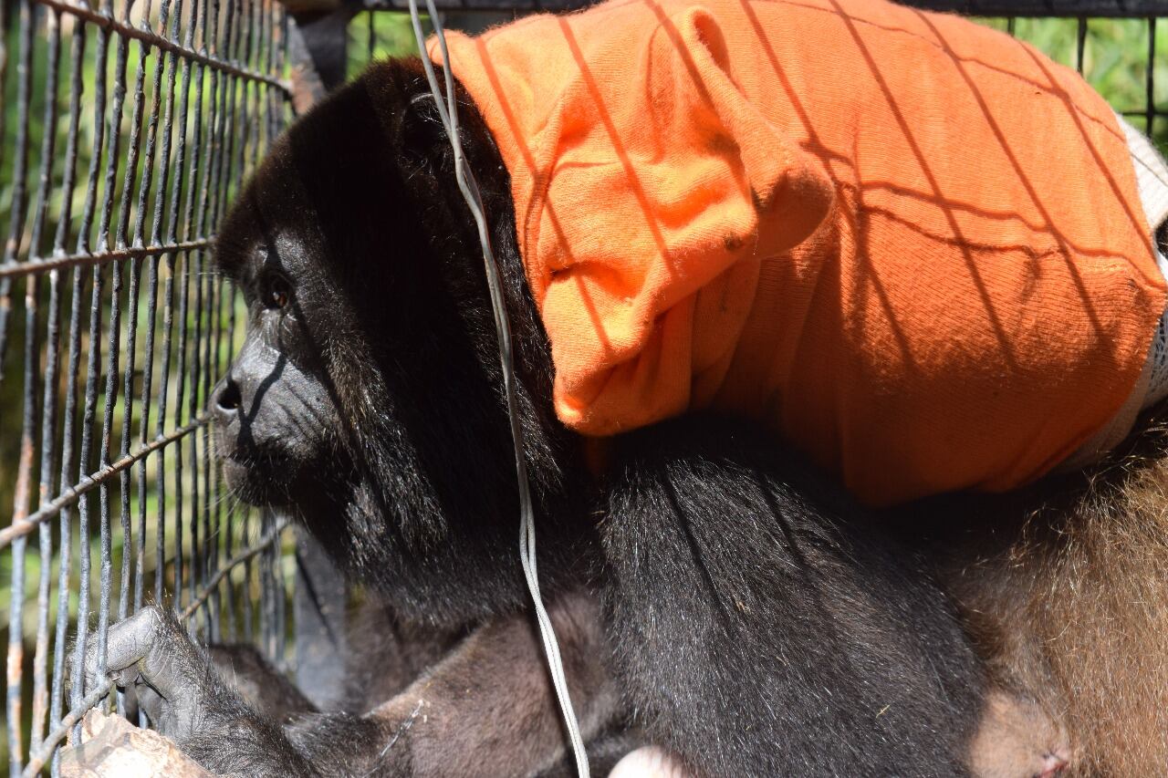 Un congo adulto rescatado tras ser atacado al parecer por un felino o un perro, se recupera en el ZooAve de la heridas que sufrió en el hombro izquierdo.