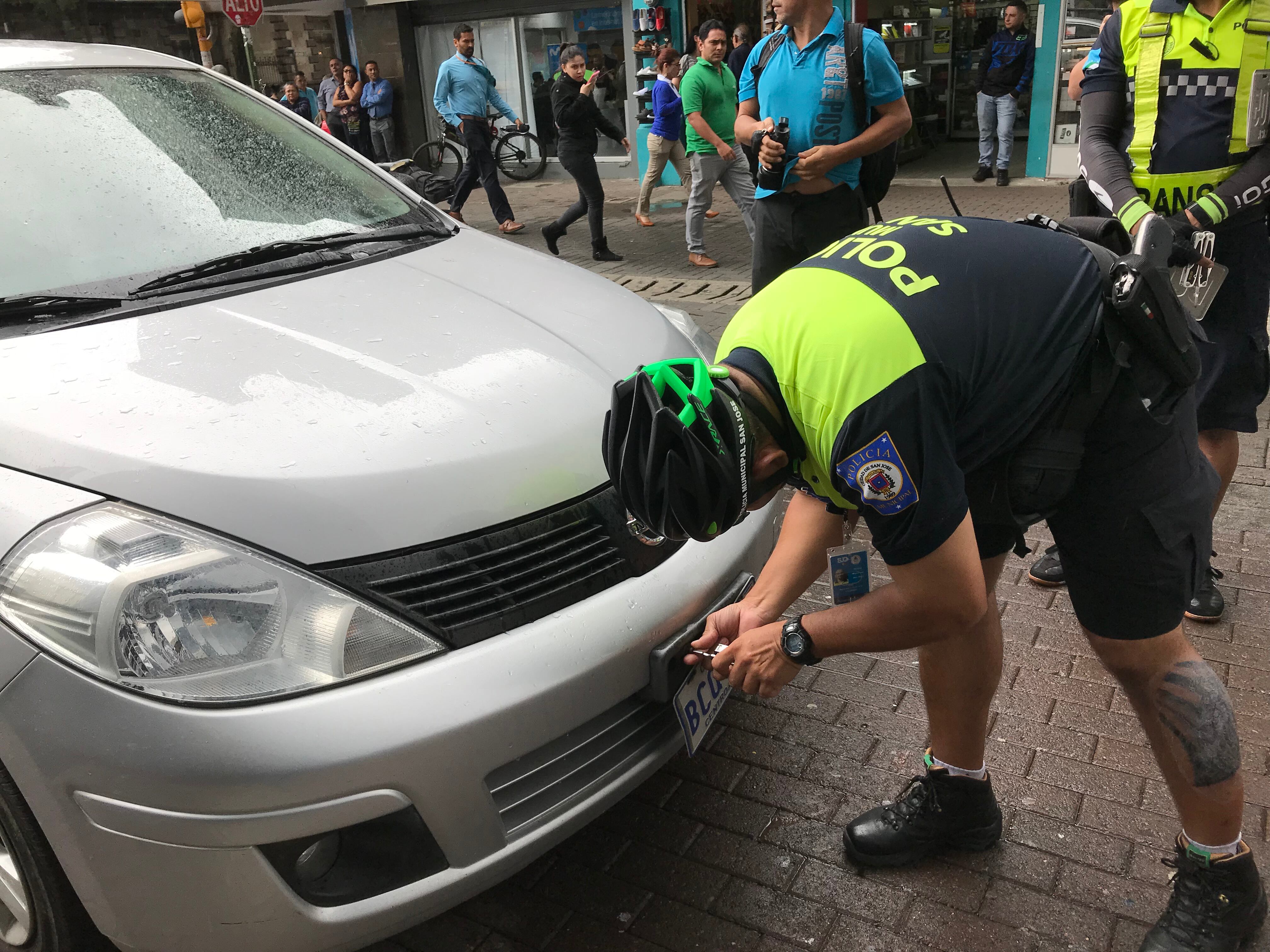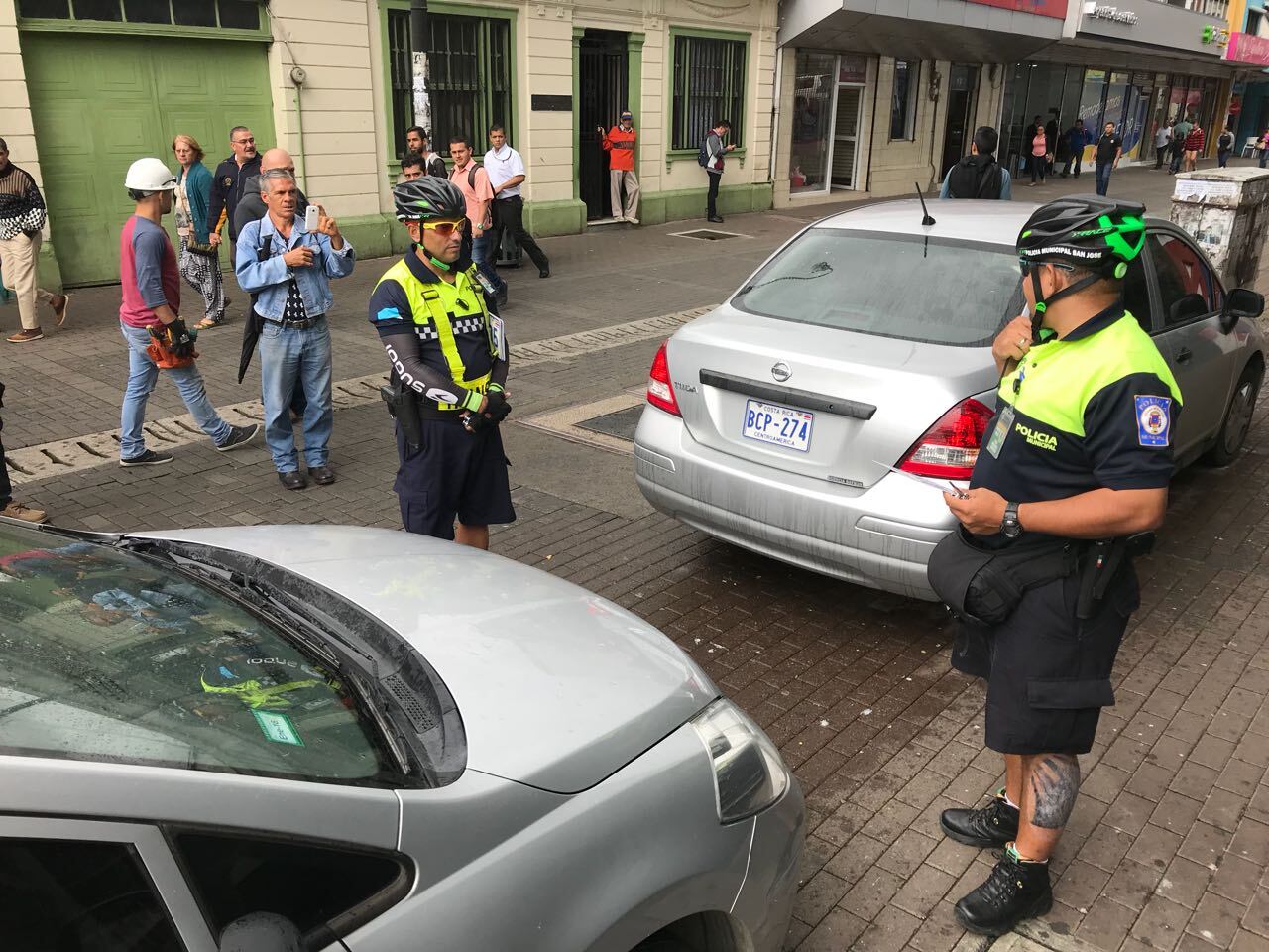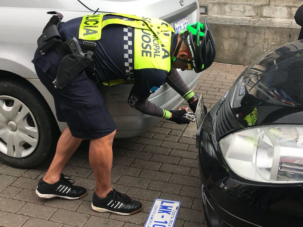 La Policía Municipal de San José metió las patas al intentar bajarles las placas a los carros del OIJ que estaban en el bulevar de la calle 3, al costado este del Ministerio de Hacienda.