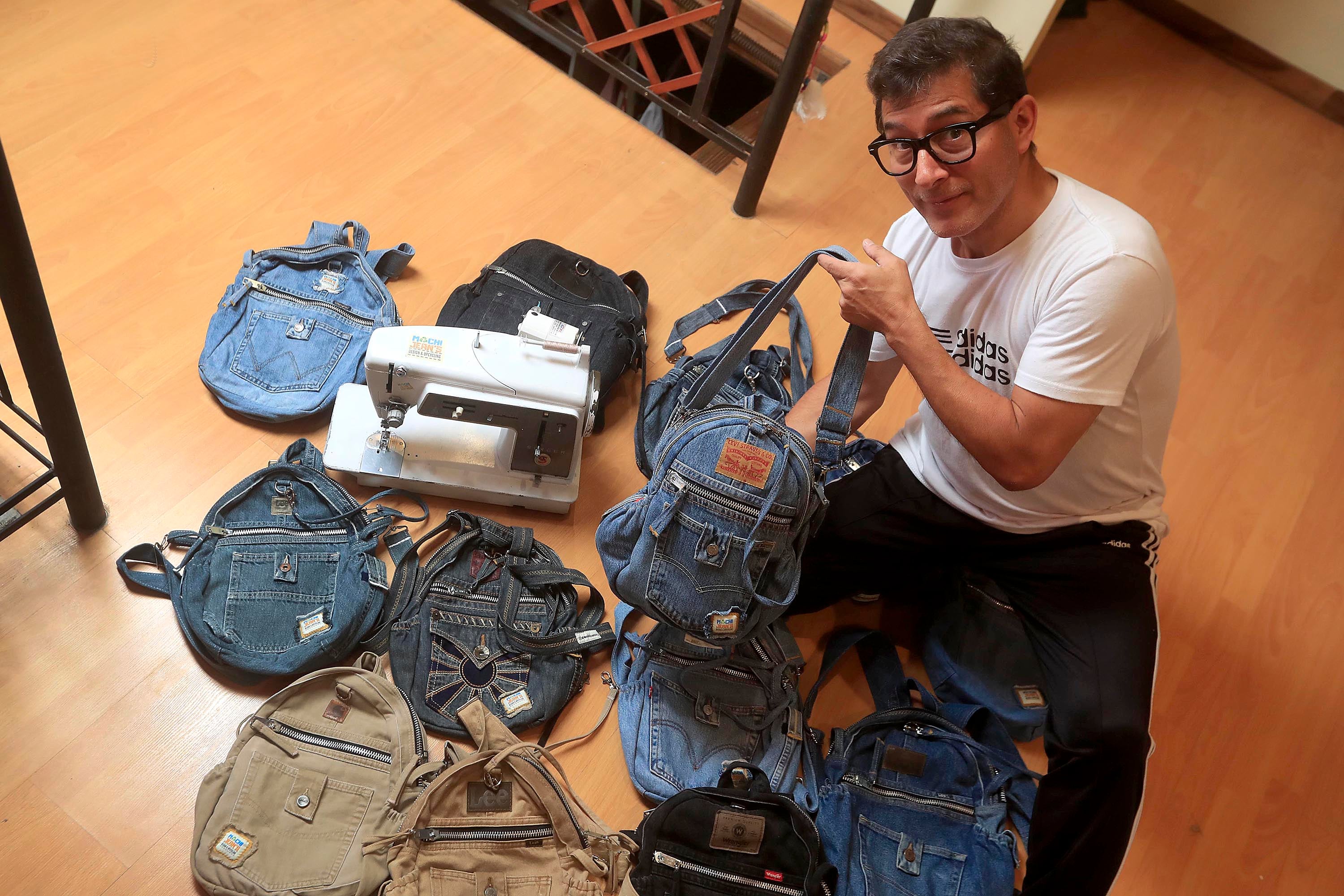 “En un paseo por mi pueblo, pasé por un mercado persa y me topé con un señor que vendía jeans y compré un par para mi hija, pero cuando llegamos a la casa, una de ellas me dijo: ‘papi, mira qué bonito sería hacer una mochila con esto’ porque yo ya había hecho bultos, pero de otro material, utilizado para hacer las velas de los veleros”, comentó Martínez.
