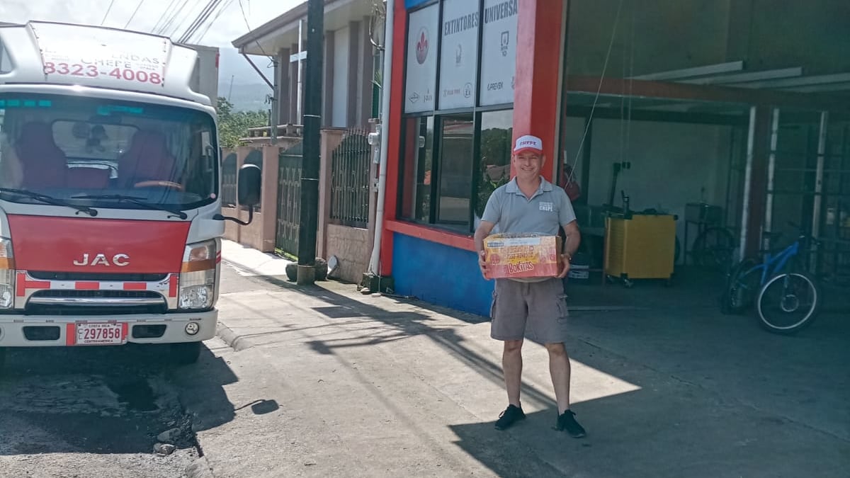 Su día inicia a las 8 de la mañana cuando sale de su casa rumbo al centro de Ciudad Quesada y a las 9 empieza a recoger las encomiendas, para entre 11 a.m. y 12 md. empezar a distribuir en Muelle a la 1 p.m., a las 2 p.m. está en Monterrey, a las 3 p.m. llega a Guatuso para a las 4:30 p.m. repatir y recoger en Upala. De regreso hace escala en Guatuso para tomarse un cafecito y llega a su casa a las 9:30 o 10 p.m.