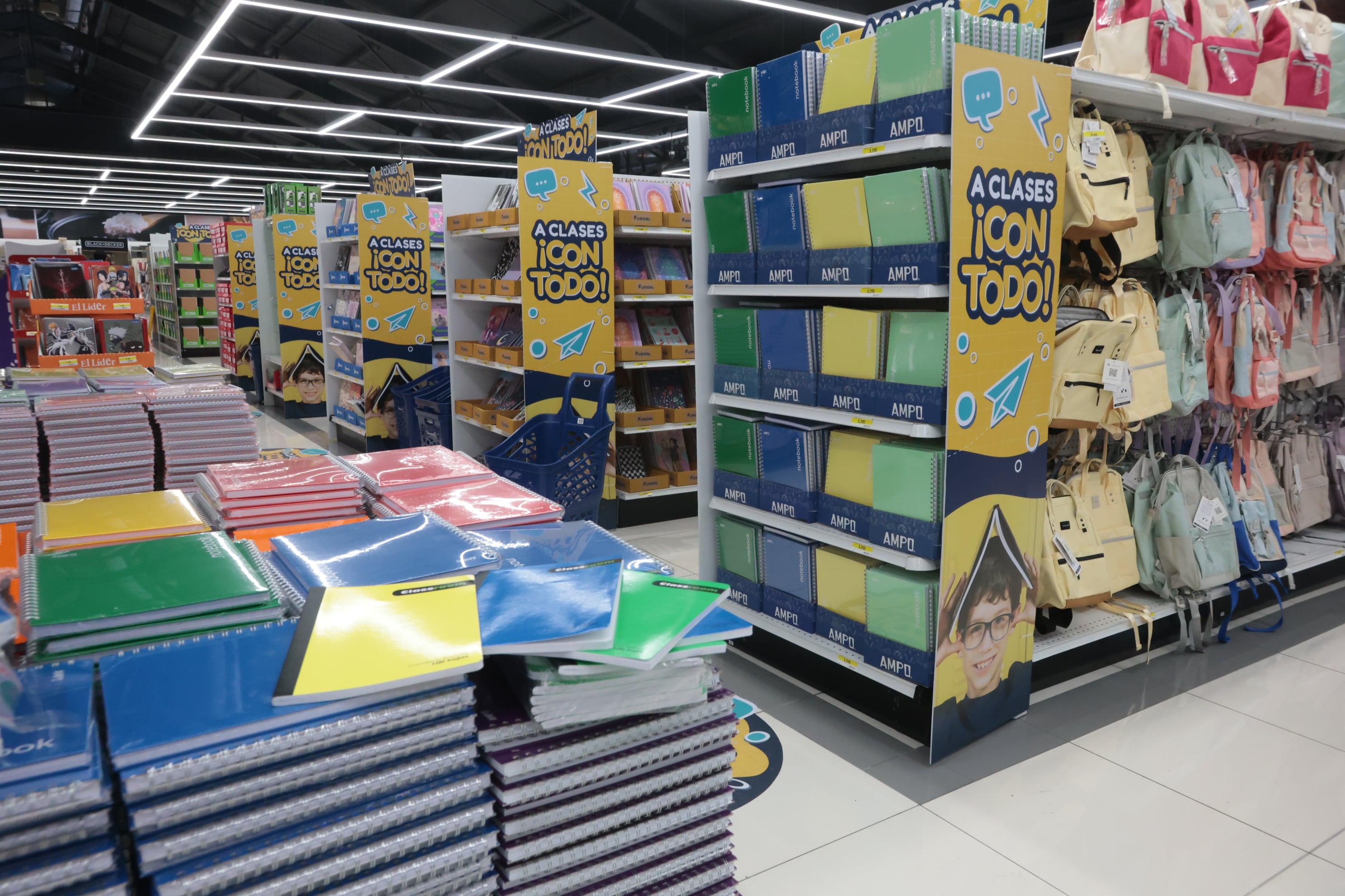 Entre los pasillos destacan accesorios y útiles con nuevas colecciones de personajes como Ferxxo (el cantante colombiano), Snoopy y Stitch, así como líneas especializadas de escritura como Pilot de origen japonés, con opciones borrables, marcas reconocidas como STAEDTLER, mochilas Himawari, además de una amplia variedad de libros de lectura sugeridos por los centros educativos.