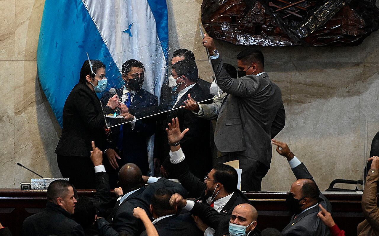 Pero una veintena de legisladores rebeldes de Libre decidió respaldar a Jorge Cálix al frente del Parlamento, cuya candidatura contó el apoyo del PN y otros grupos opositores a Castro, en una sesión realizada en medio de gritos y golpes.