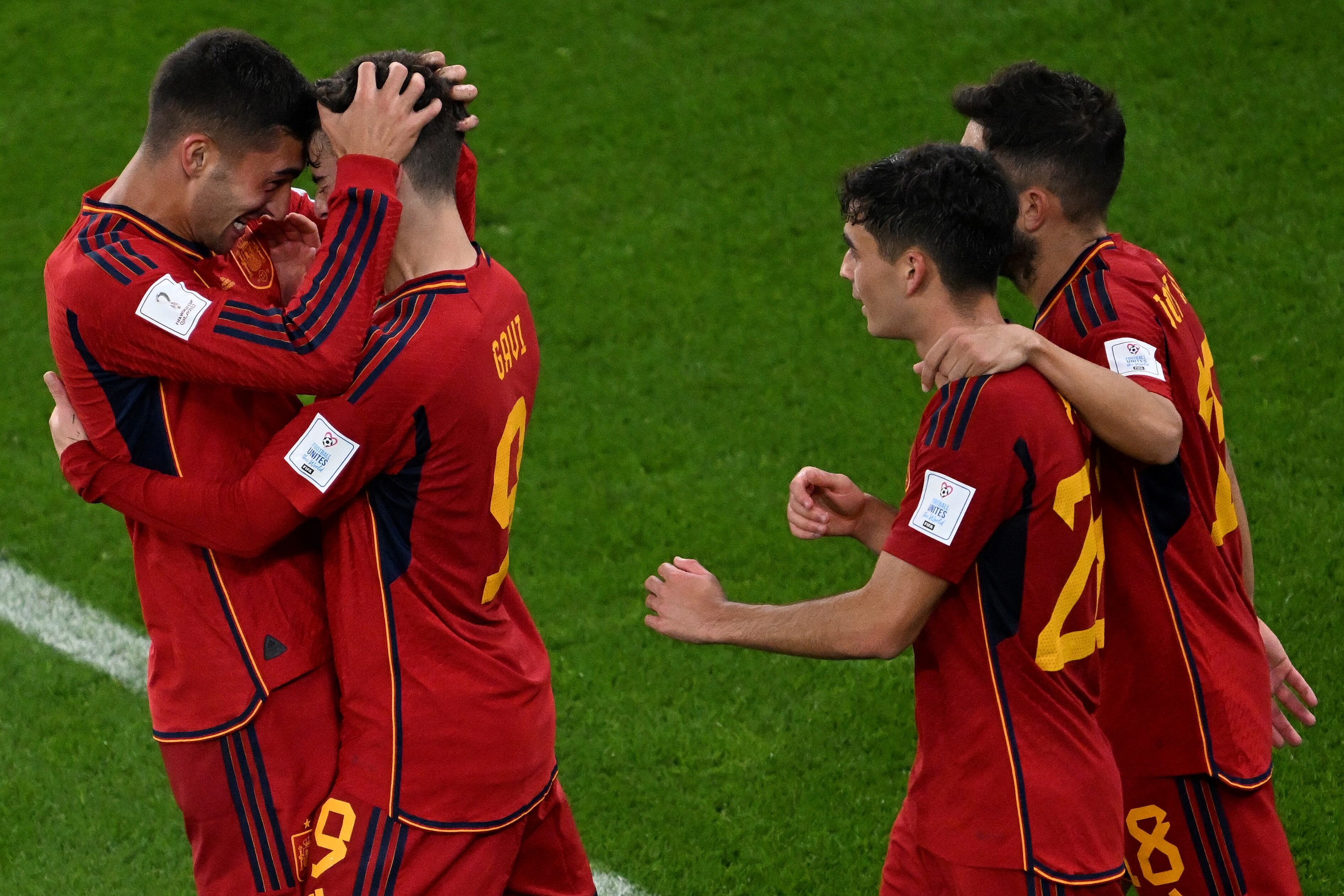 Y en ese intento de cinco minutos, España se sacudió, aceleró, abrieron por la izquierda y Morata le mandó un pase espectacular a Gavi, que metió el borde externo y la mandó a guardar para meter el quinto gol.
