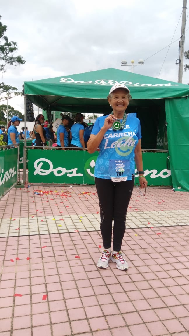Ella es pensionada del hospital Calderón Guardia desde hace 20 años. Trabajó en el centro médico como asistente. Tiene cinco hijos, 16 nietos y antes de marcharse de la carrera invitó a todo el mundo a tomar la misma medicina que ella: el deporte.