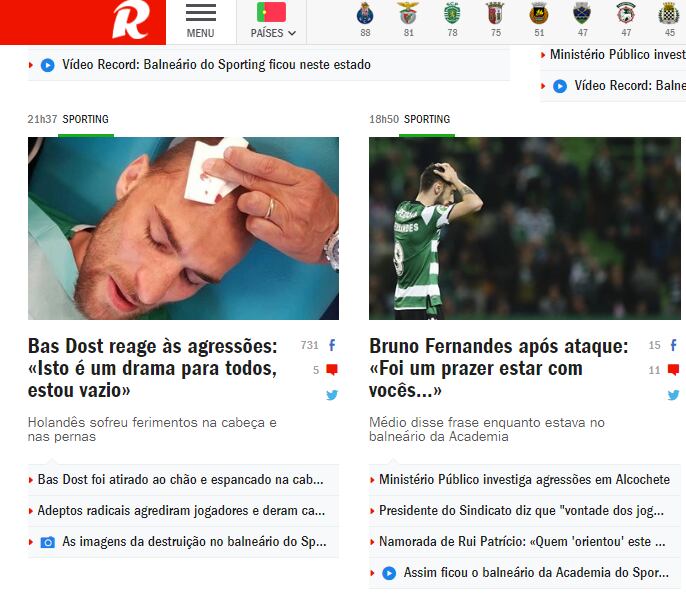 El martes, unos 50 fanáticos tomaron las instalaciones de entrenamiento del equipo lisboeta y golpearon a algunos jugadores como Bast Dost, Marcos Acuña, Rui Patricio, William Carvalho, Rodrigo Battaglia y Raúl José, además del entrenador Jorge Jesús.