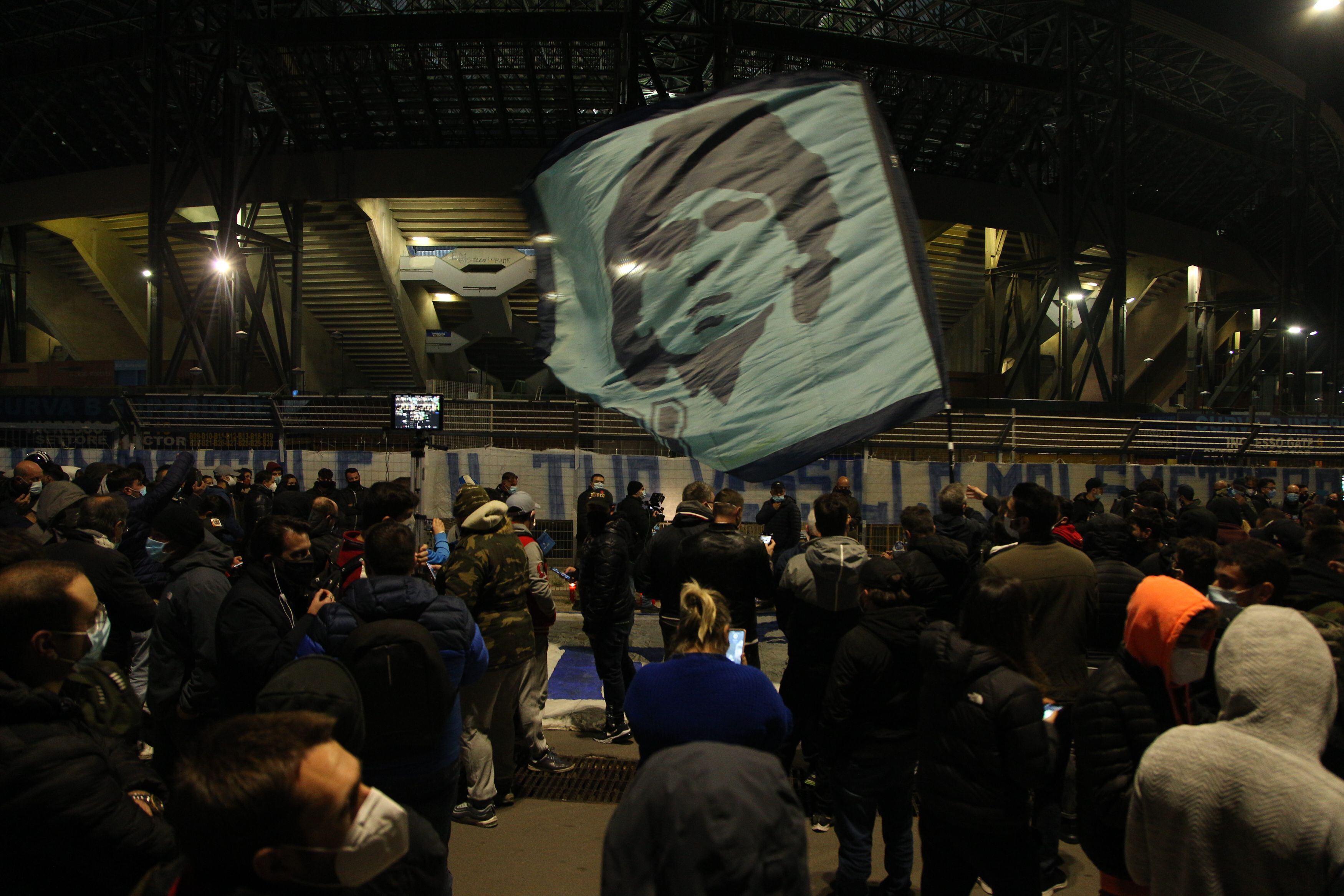 El estadio napolitano se iluminó en honor del exfutbolista del Nápoles y algunos fans se citaron en la que fue la vivienda de Maradona, durante su estancia en Italia.