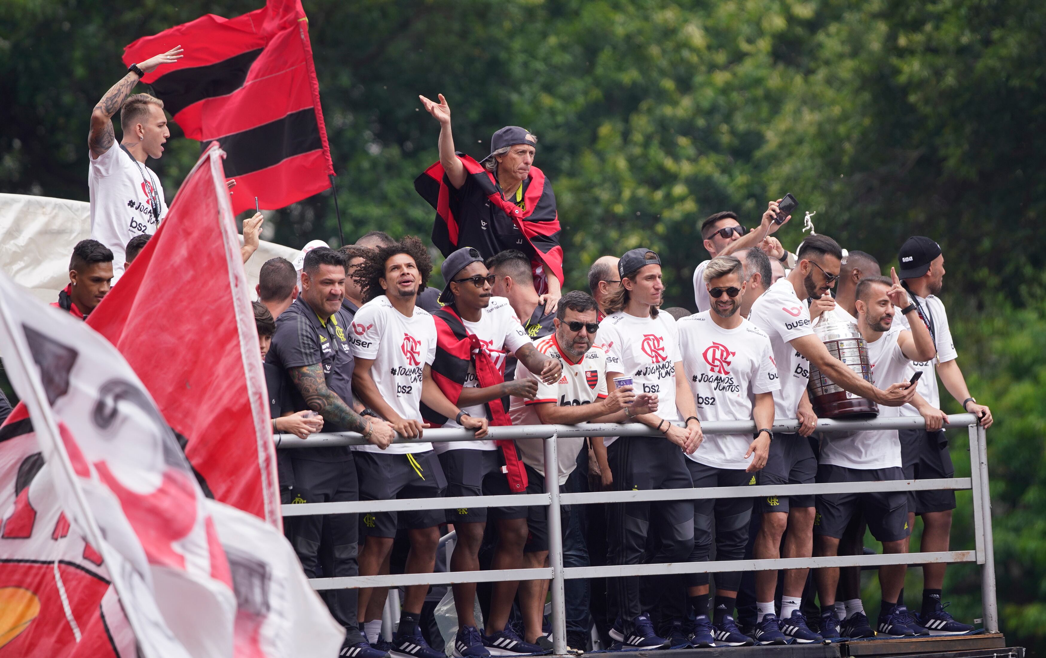 El desfile acabó poco después para que plantilla y aficionados pudieran seguir el partido del Brasileirao en el que el Palmeiras perdió 2-1 con el Gremio de Porto Alegre, un resultado que le da el título de liga al Flamengo.