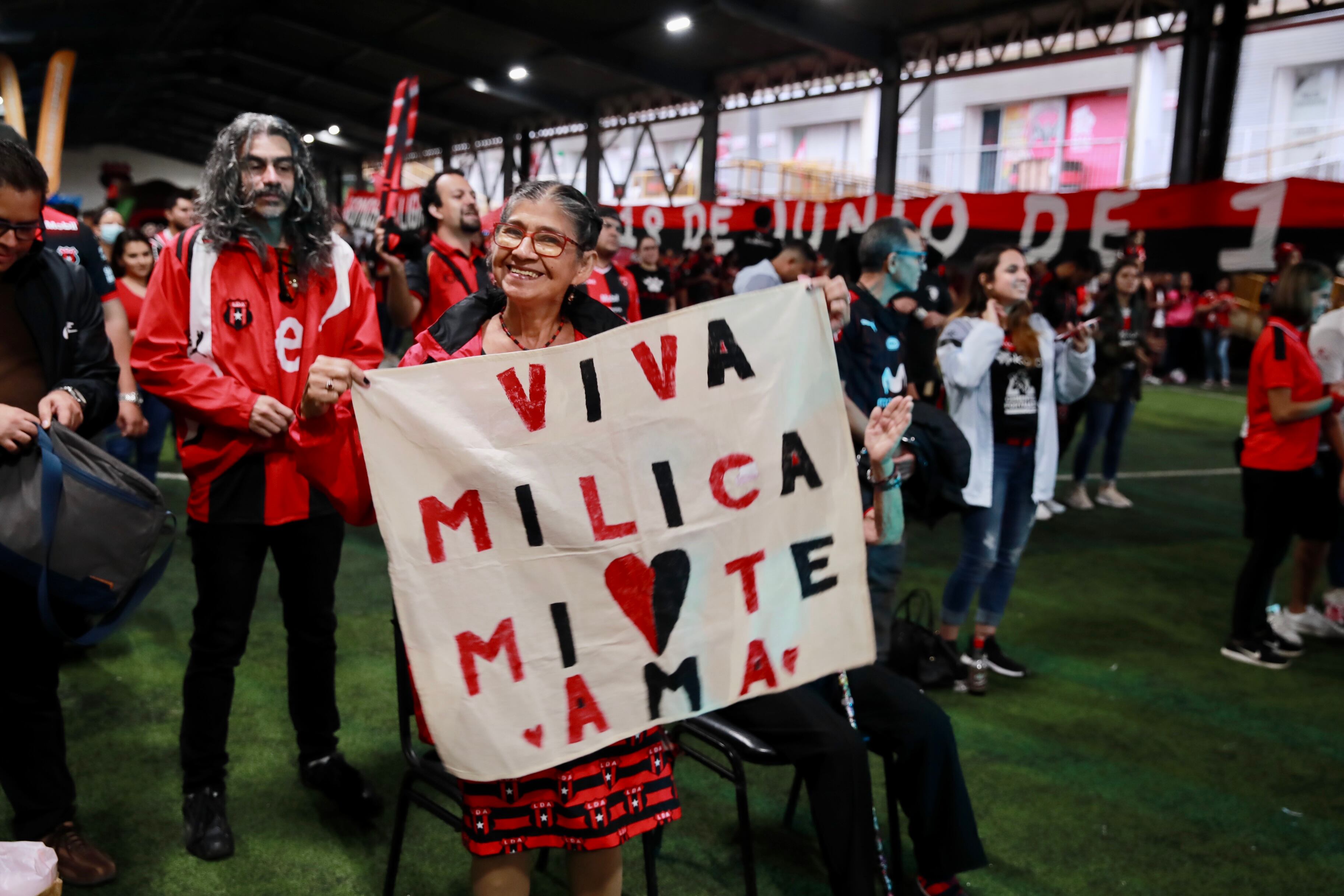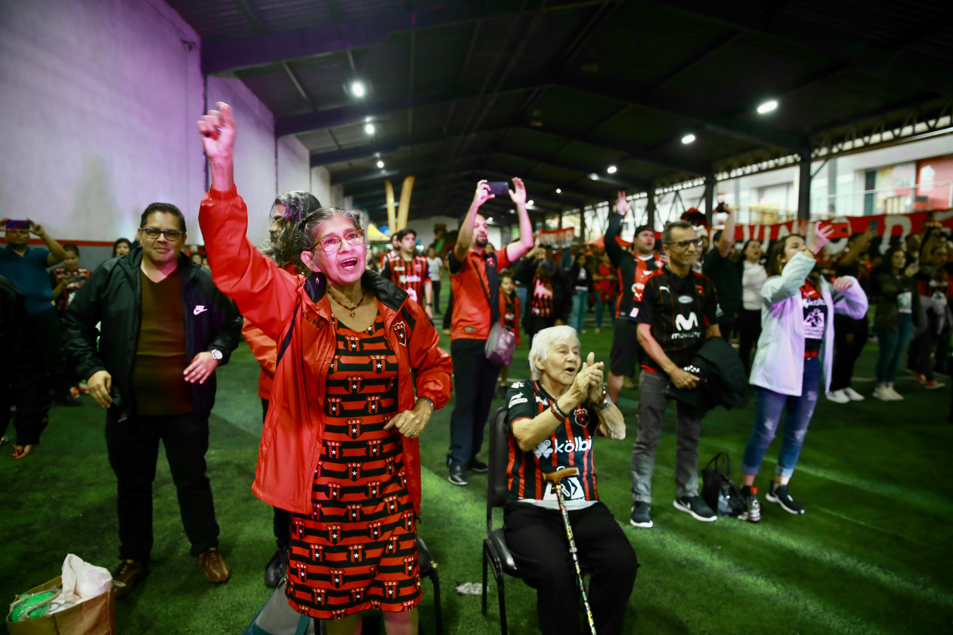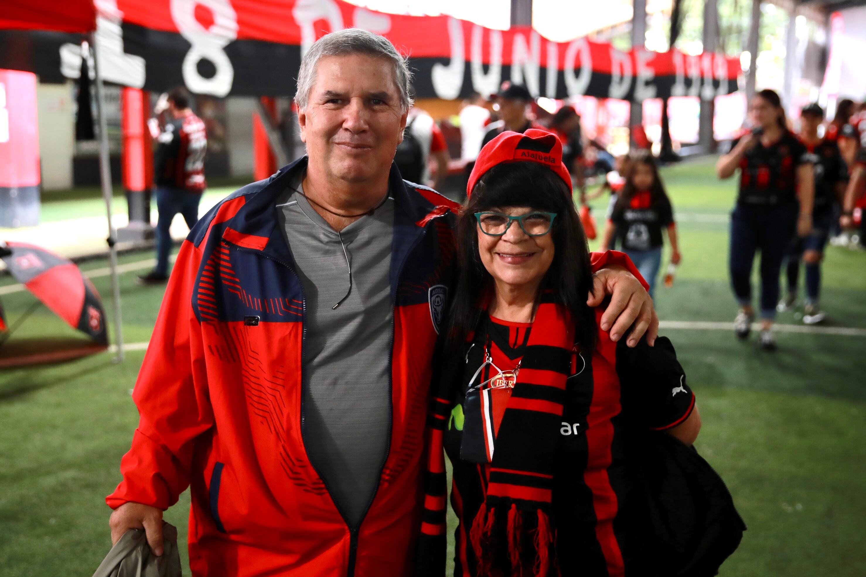 En la fiesta había espacio para todos, doña Irene Sibaja andaba feliz de la vida con su chema rojinegra junto a su esposo, Miguel Madrigal, que andaba orgulloso un suéter de la Asociación Deportiva San Carlos.