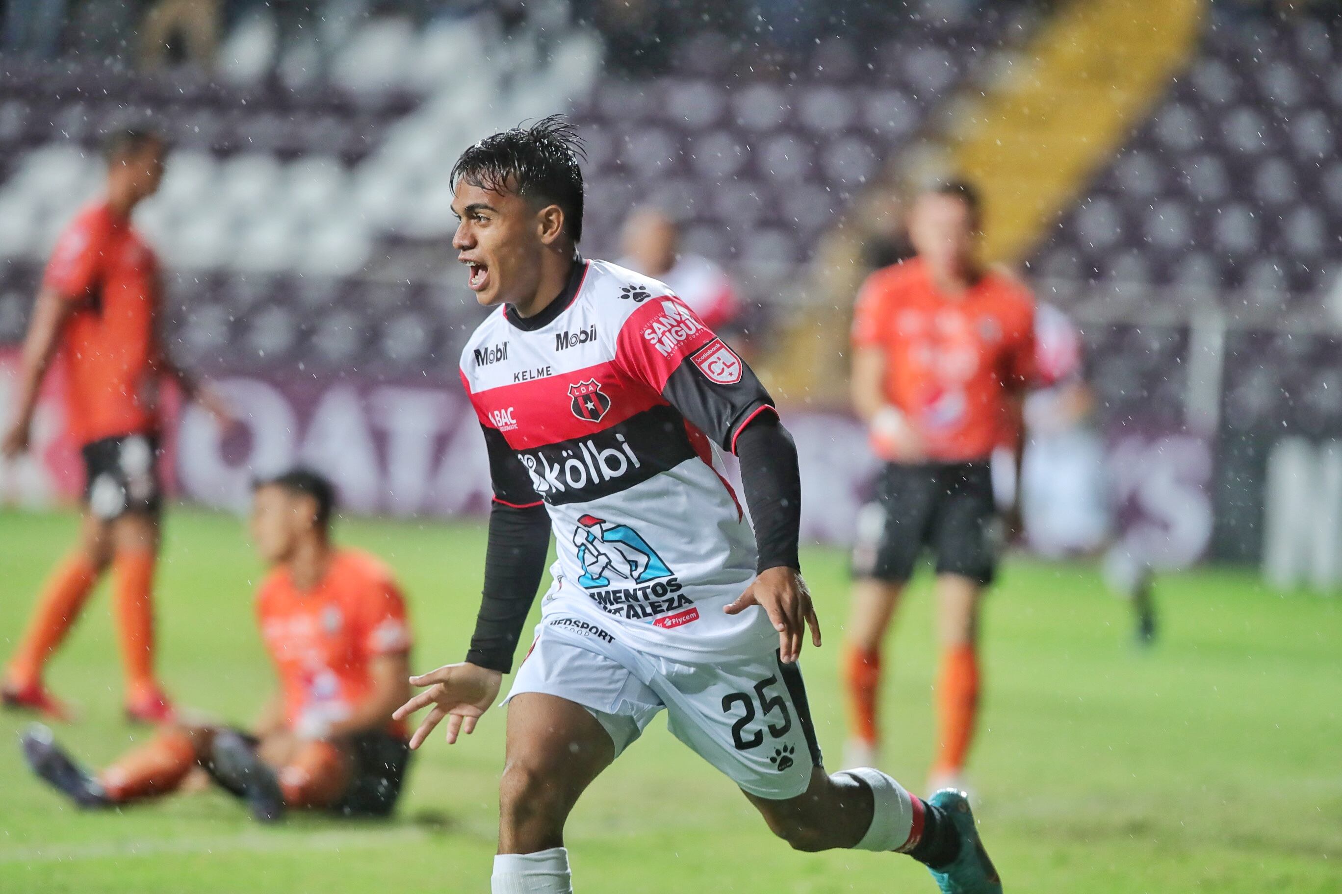Los rojinegros montaron una jugada colectiva, Johan Venegas abrió con Carlos Mora, el volante se metió el área y remató cruzado, el guardameta cuscatleco Benji Villalobos tapó con una mano, pero el rebote quedó suelto en el área chica, donde Suárez se infiltró entre defensores para definir.