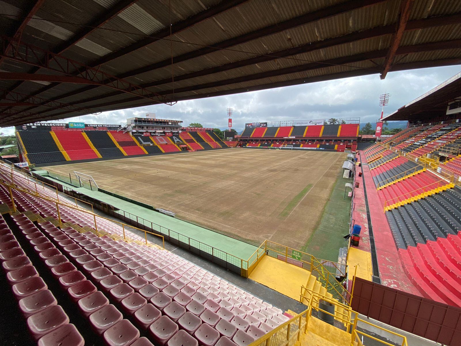 Este miércoles Liga Deportiva Alajuelense sorprendió con una foto de su cancha en un estado que muy pocos la han visto; una toma área con la gramilla totalmente removida, en pura tierra.