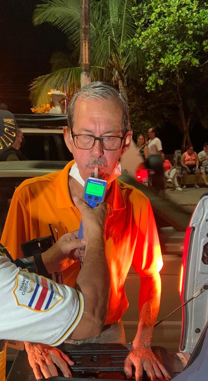 Al alcalde porteño le hicieron la alcoholemia, la cual dio 0,36 cuando lo permitido es 0,25 y tuvo que pagar una multa de cerca de ¢100 mil por sacar el carro en día de restricción vehicular sanitaria, pues ese día solo circulaban placas pares. El parte lo apeló y por eso no recibió castigo por el resultado de la alcoholemia.